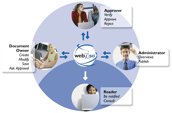 WEBISO is a software application which facilitates the creation, approval cycle, distribution and maintenance of manuals. It was created to address the challenges of administering procedures for quality, environment, health and safety standards. Webiso is a web-based solution. It can be purchased as a corporate license or as a cloud service.
